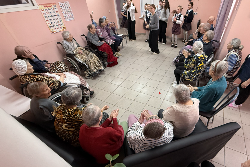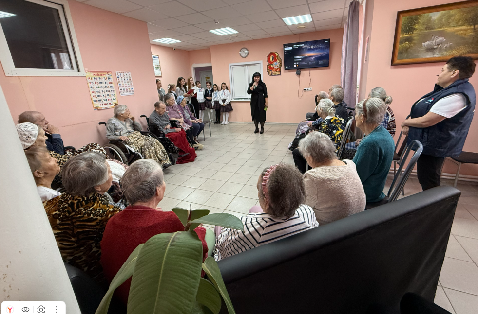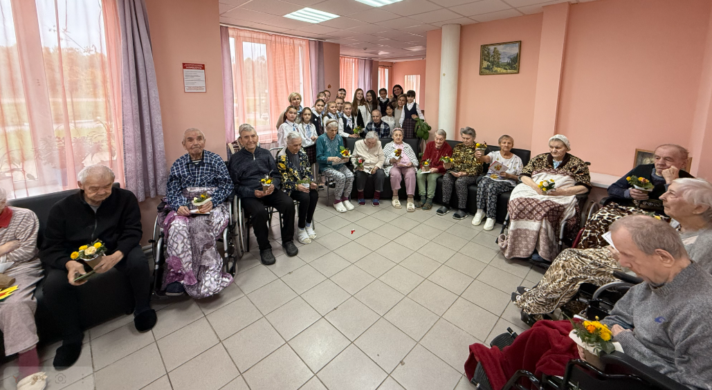 Волонтерский отряд "Альтруист" провел акцию-поздравление «Тепло души». Взрослые и ребята посетили людей почетного возраста в пансионате пожилых и инвалидов " Заботливые руки"